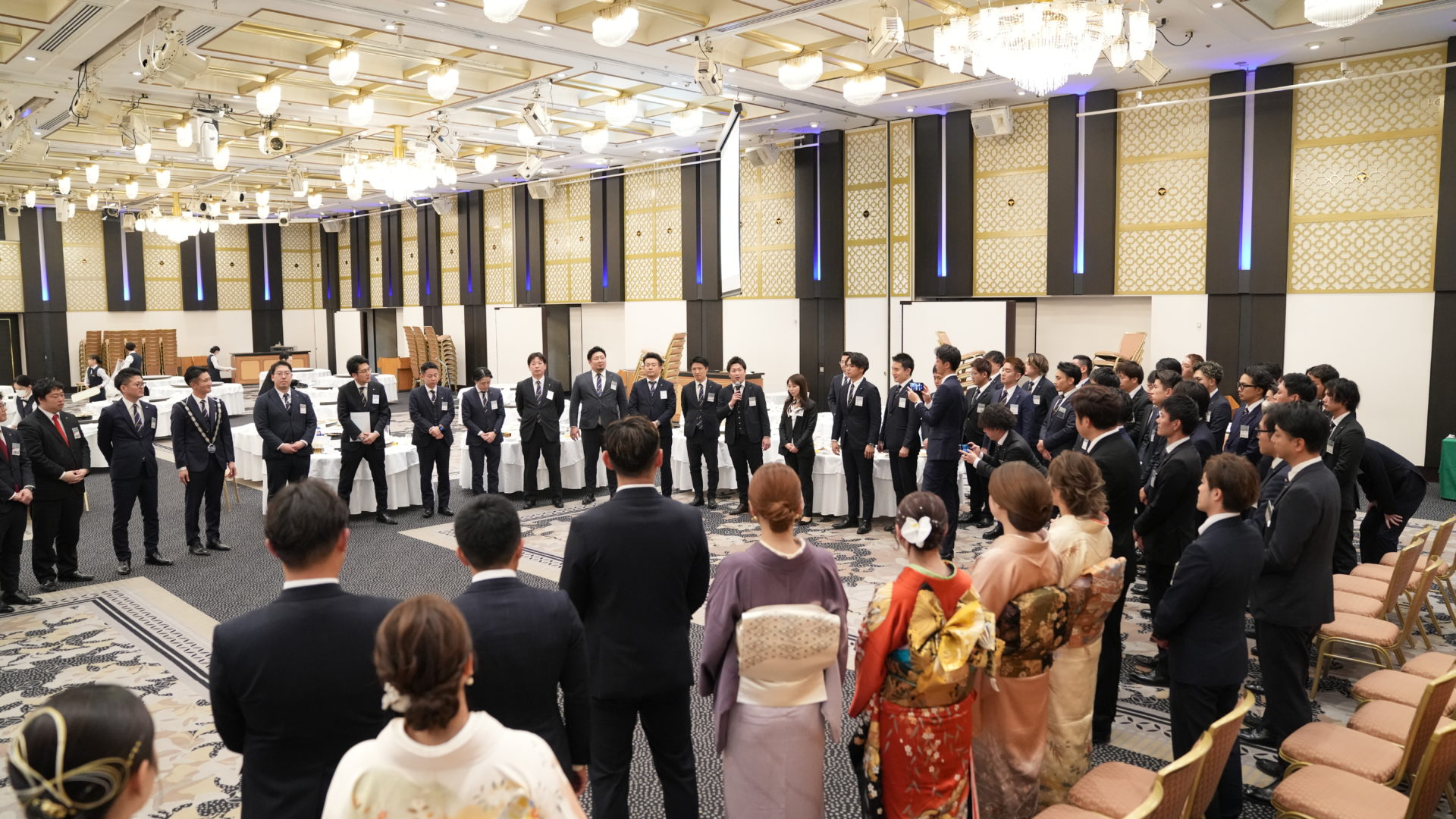 青年会議所では、月に1回メンバー全員が一堂に会する例会が行われます。熊本青年会議所がいまどういった活動をしているのか、どういう方向性に進んでいるのかを全員で共有したり、著名な方を招いて講演会やセミナーなどを、様々なテーマの下、開催しています。