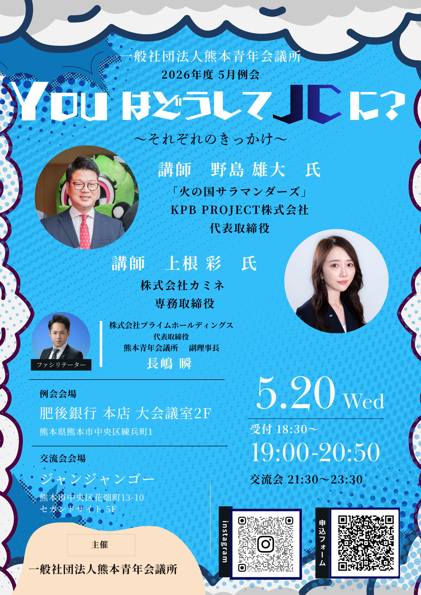 今回の5月例会では、JCのリーダーとして組織を牽引してこられた、熊本と神戸のトップランナーお二人を講師にお招きします。